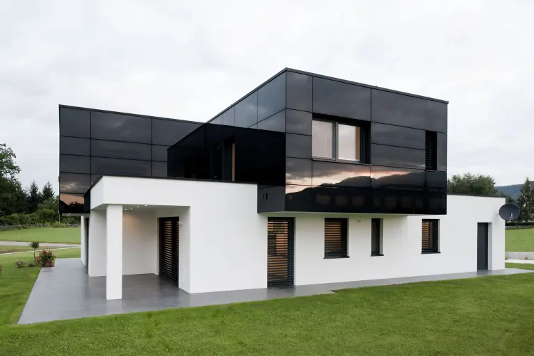Predsadená prevetrávaná fasáda so zvýraznenými spojmi.